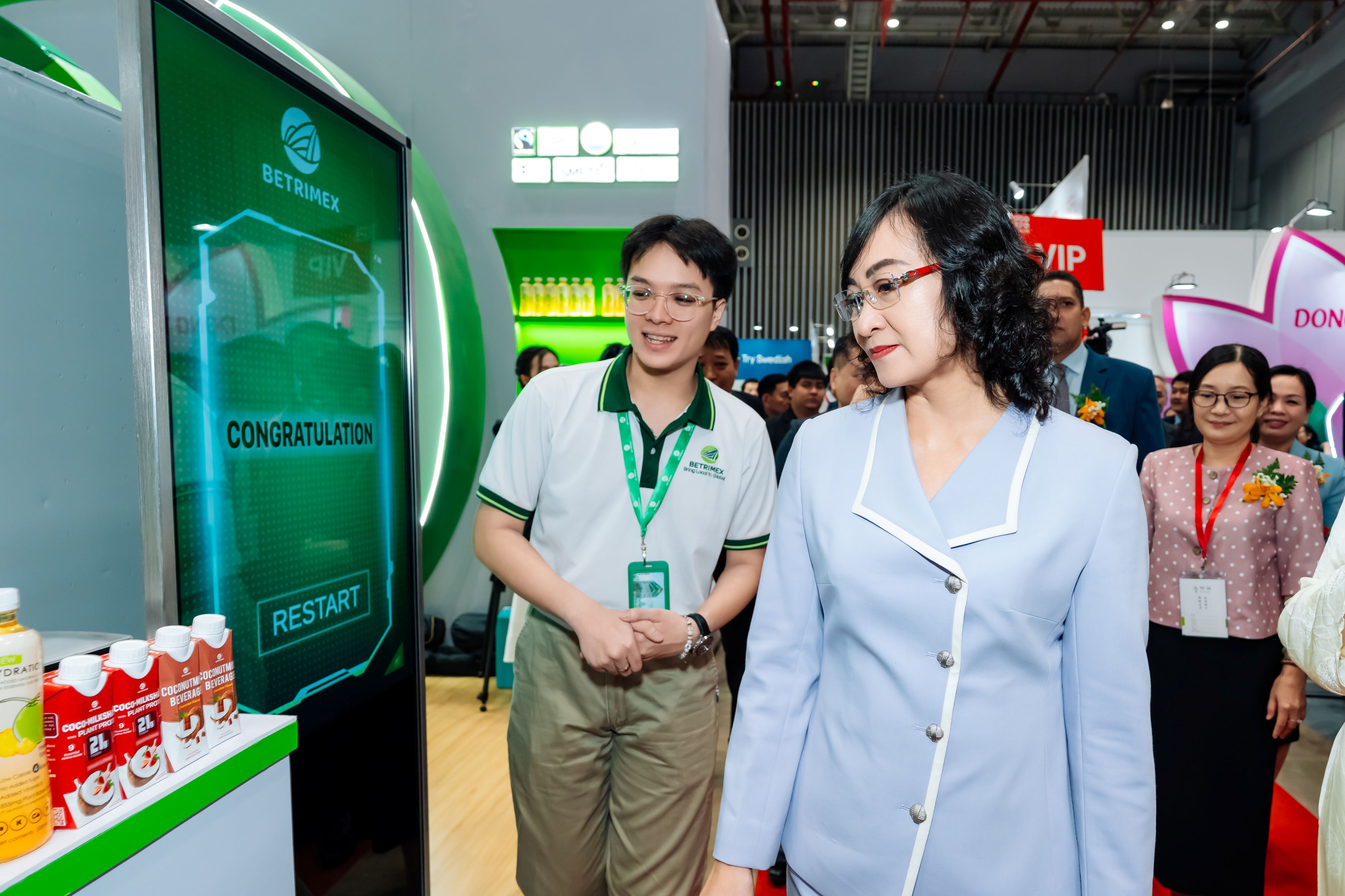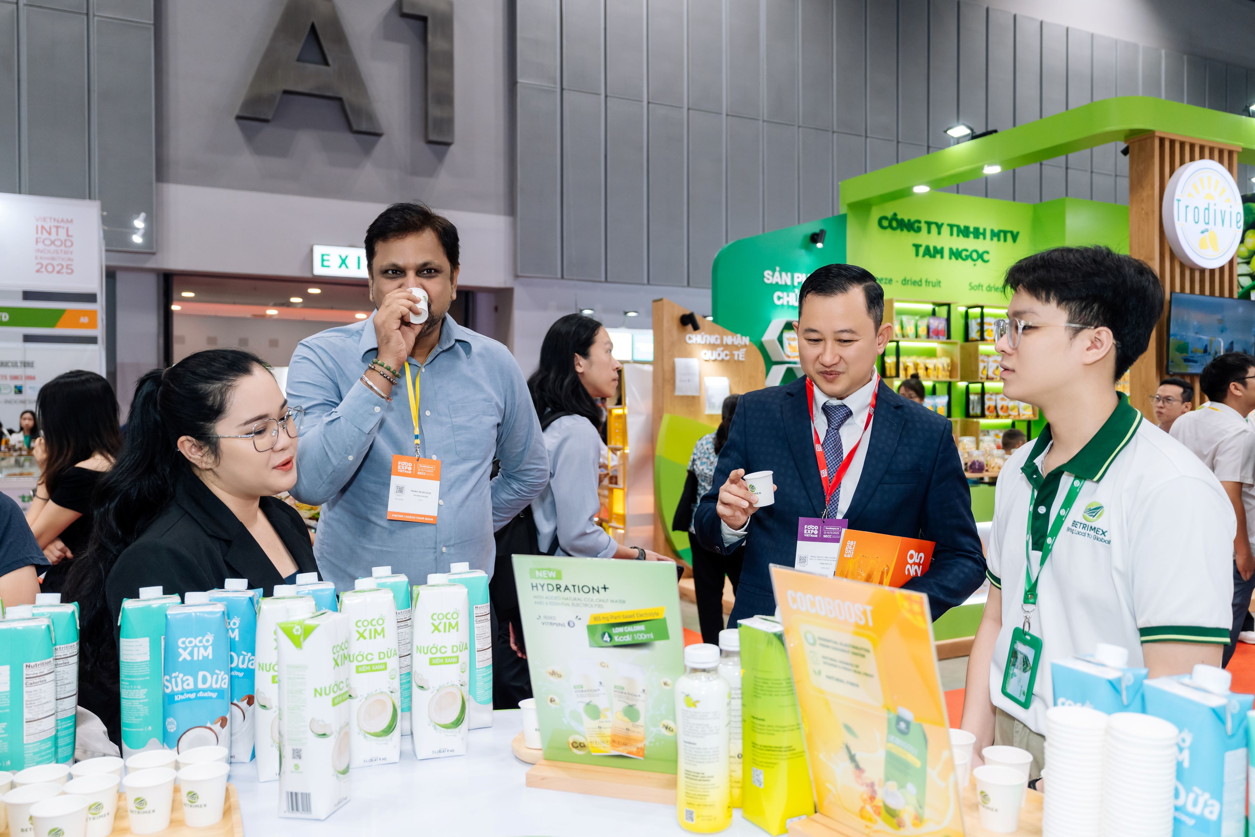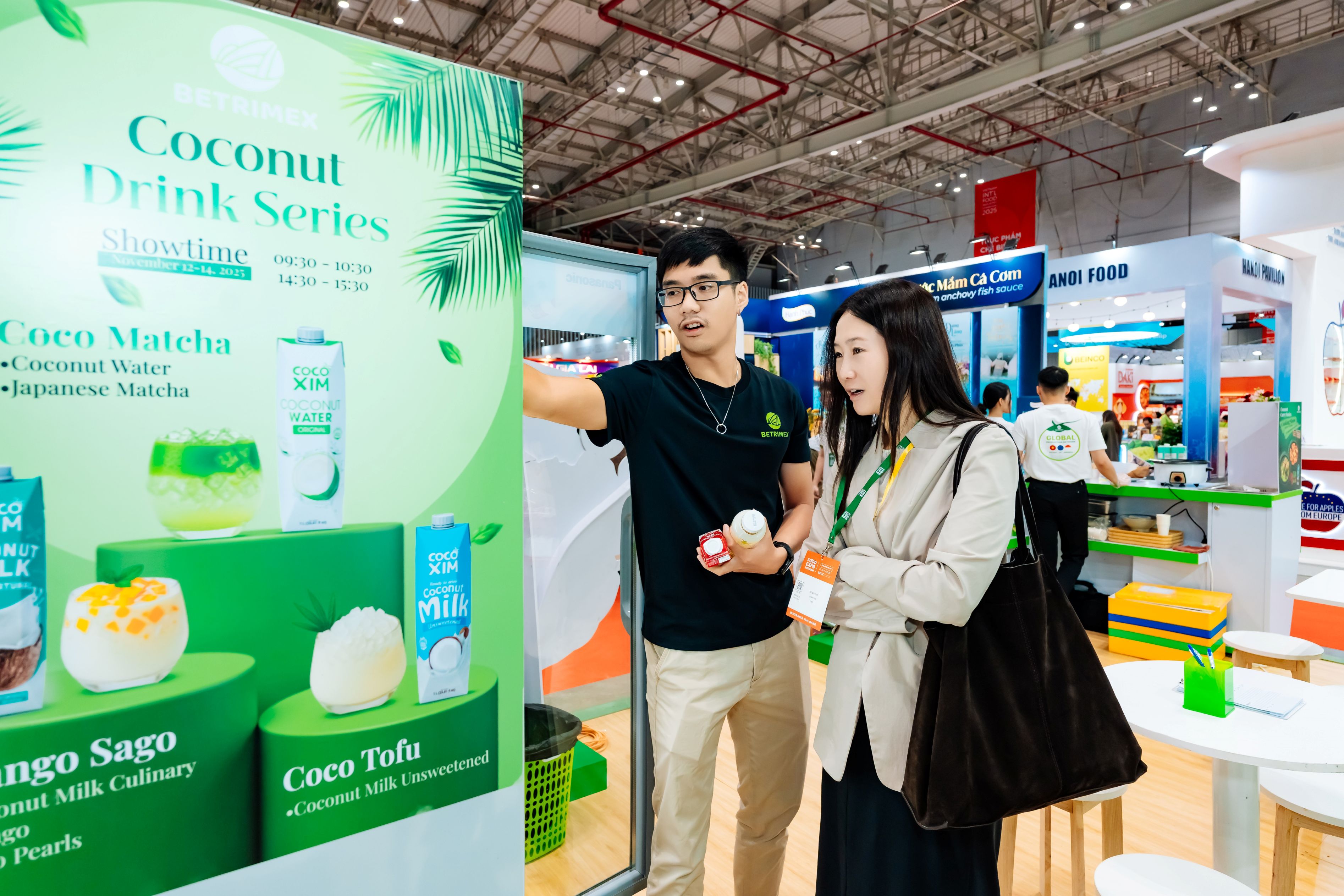 At Vietnam Food Expo 2025, the Betrimex booth (Hall A1 – C13–16) continued to stand out as a key destination for visitors, distributors, and international partners. Throughout the event, the steady flow of guests reflected strong interest in Betrimex’s innovative coconut product portfolio
