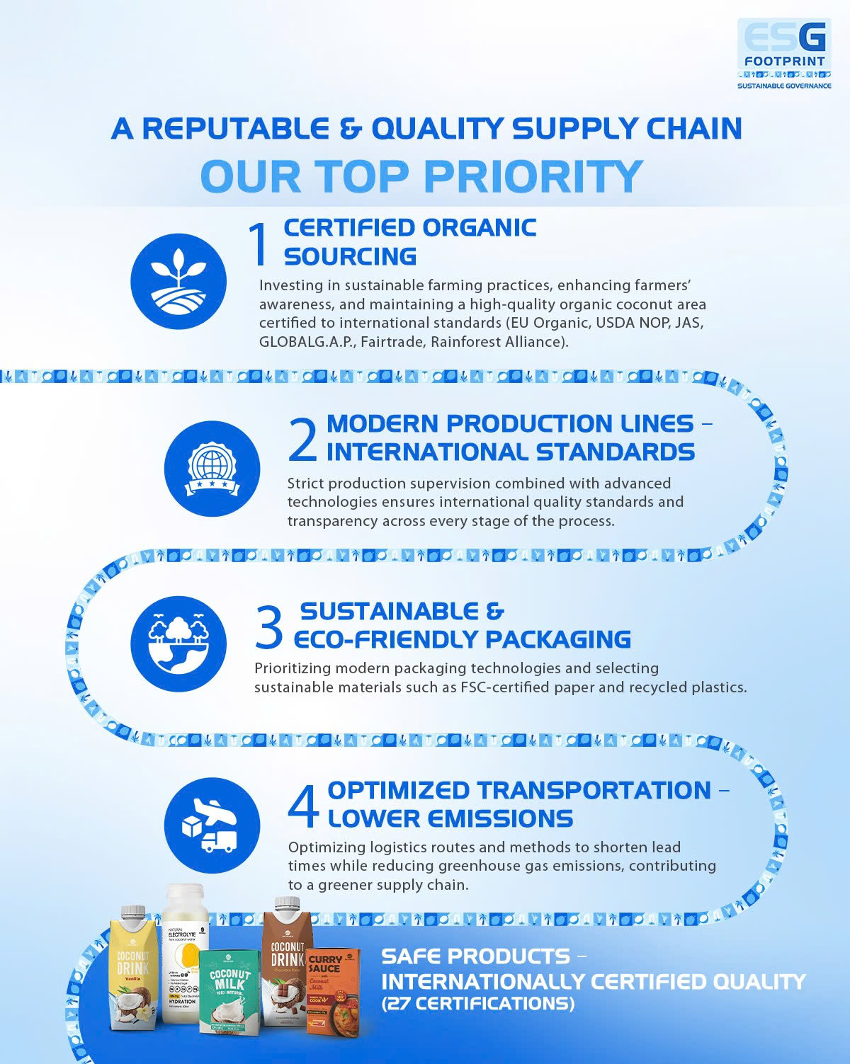 The next pillar lies in cross-functional coordination between production, technology, and partners. Every production process is tightly monitored to ensure transparency, alongside prioritizing sustainable and eco-friendly packaging solutions from suppliers with clear ESG commitments. The green supply chain is further strengthened by optimizing logistics to minimize emissions.
